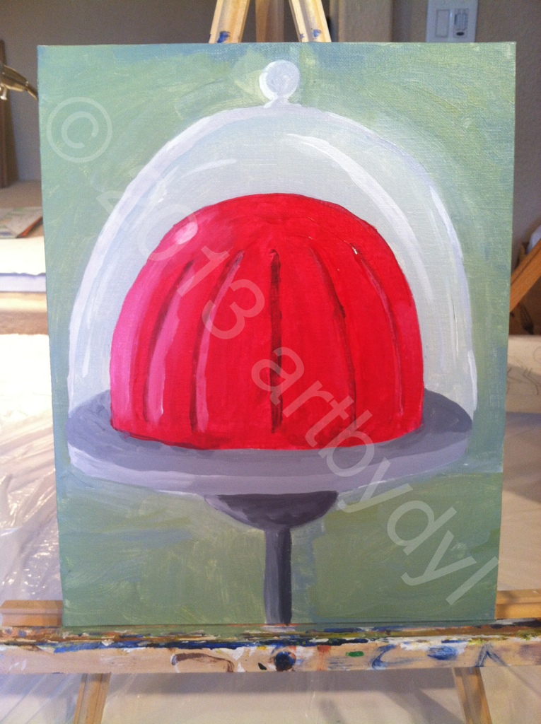 This week the art class learned about artist Thiebaud. This is Dyl’s vision… He says he would never eat a Jello mold but thought it would be fun to paint one.