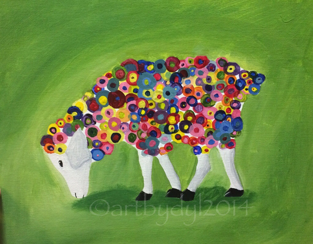 Ron Suskind, author of Life, Animated, wrote, “We especially can’t stop staring at his sheep, who looks like Kandinsky’s ‘Color Study – Squares and Concentric Circles (1913)‘ engaged in some rapid mitosis and grew legs.” Spot on!