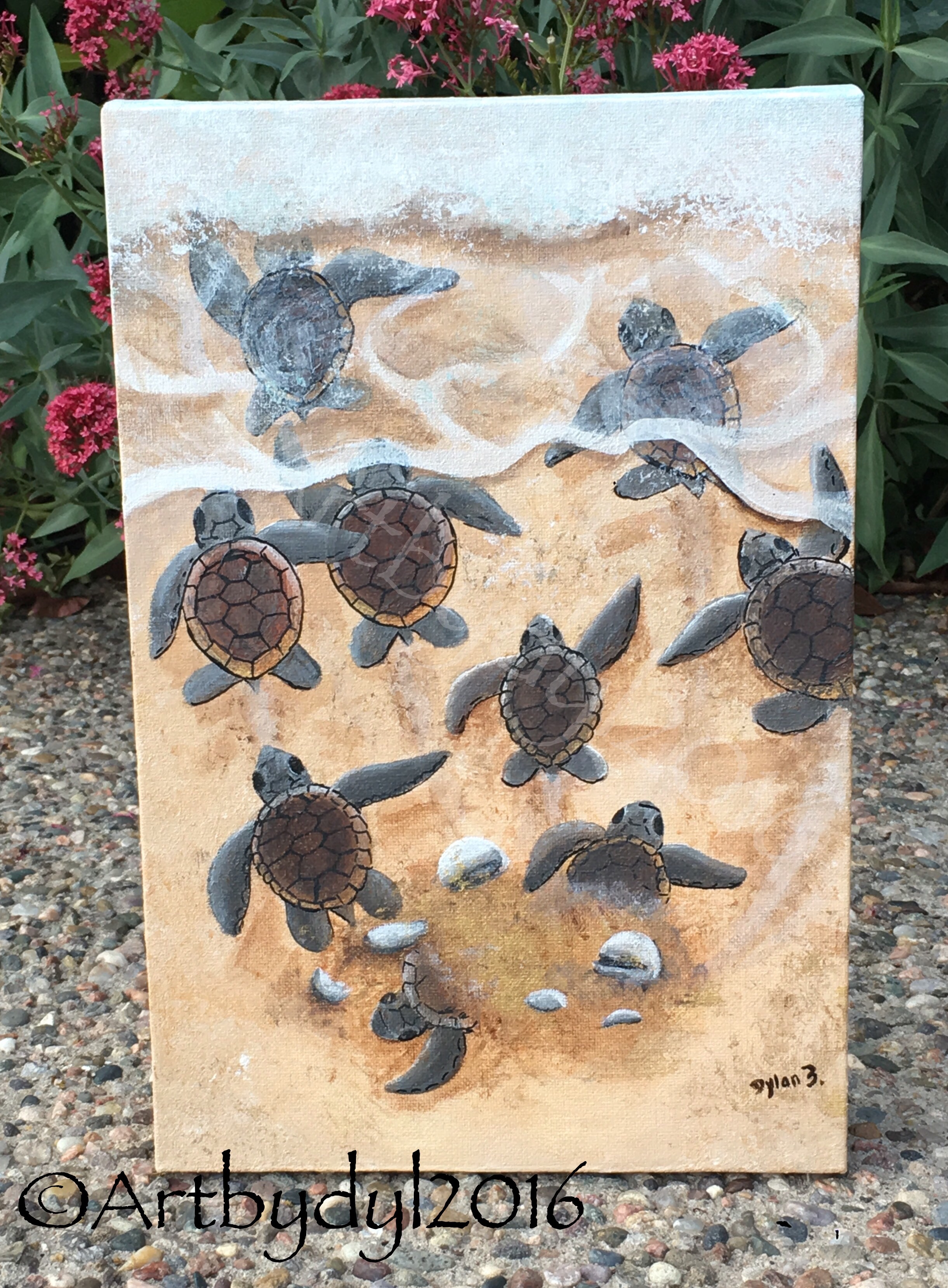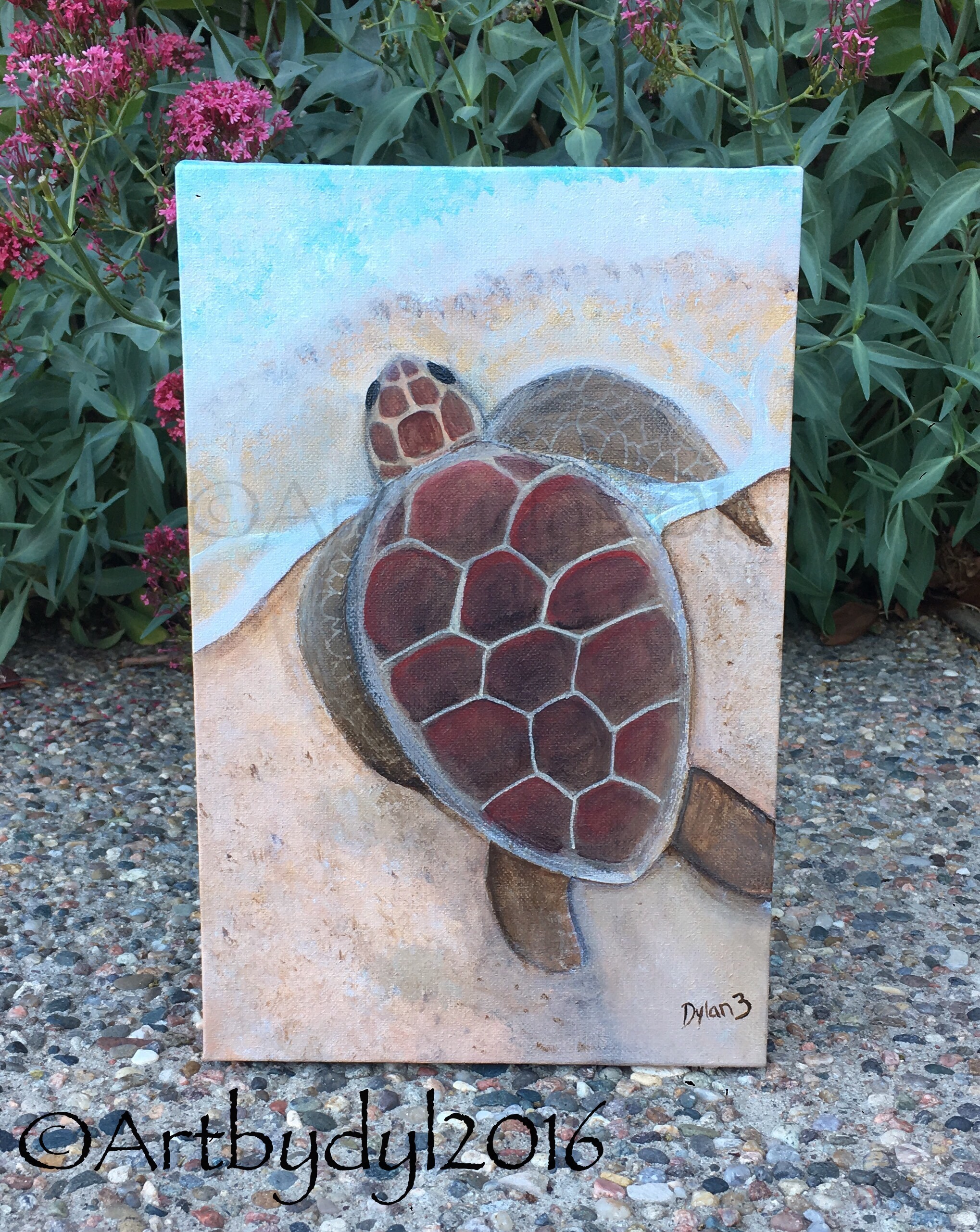 Dyl painted this loggerhead turtle in hopes that he would be part of the Tour de Turtles T-shirt art contest. Well, he made it to the finals! If you love his turtle, like he loves turtles and the ocean, please follow the link and click LIKE.