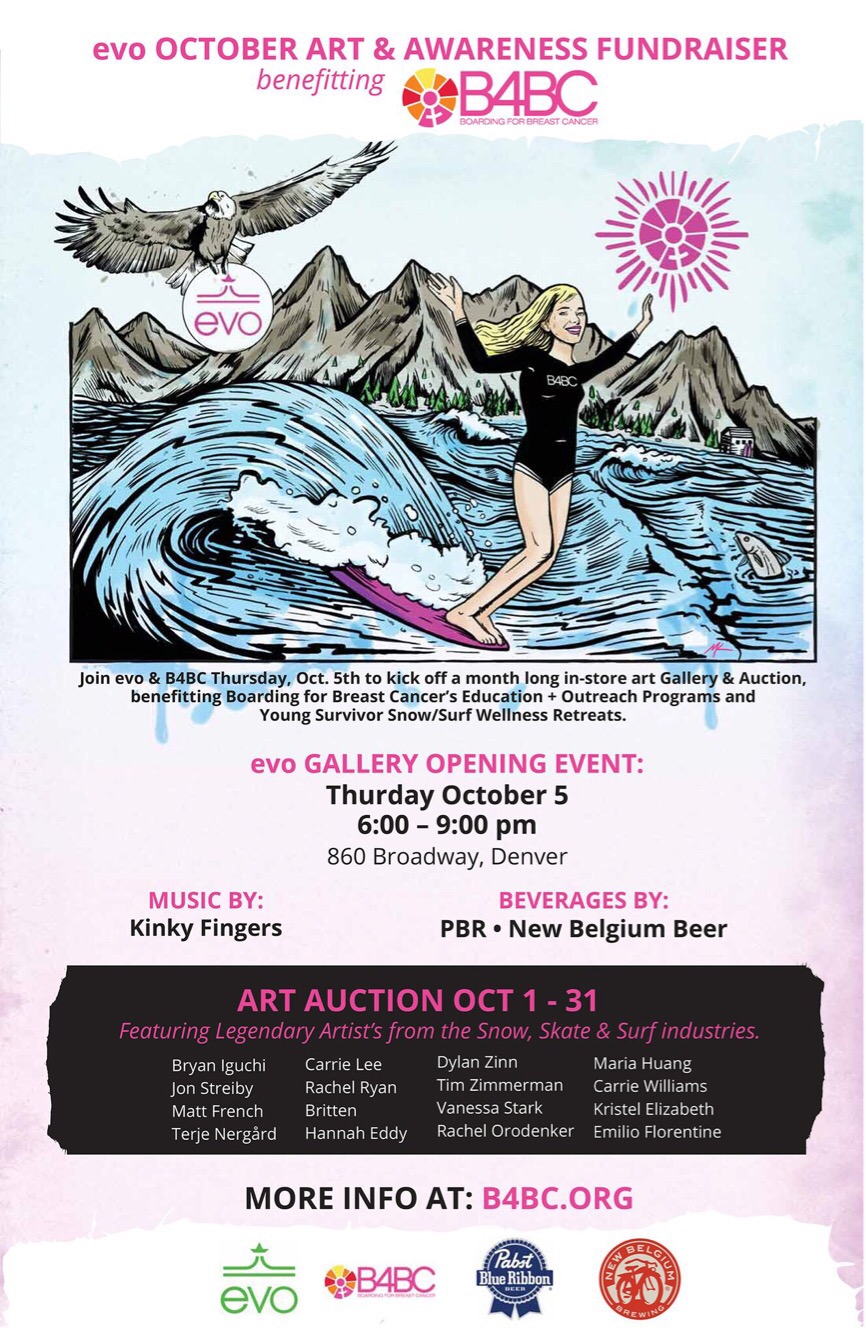 Nāmaka’s Tears is currently at the evo Denver store ready for bidding. All proceeds benefit B4BC. If you’re in Denver stop in! Otherwise please call their store, all bids are welcome and accepted over the phone. evo B4BC Arbor Skateboard