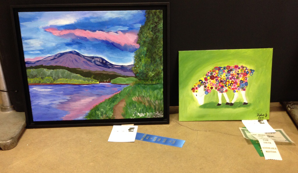 Dyl entered two paintings into the 2014 New Mexico Arts and Crafts Fair youth exhibit. This show attracts artists from all over the state including many youth artists. Dyl’s “Sunrise on the Rio Grande” won first place for 9th graders. “Spotted Sheep” was selected for a merit award by one of the exhibiting adult artists as well as an Honorable Mention by the Fair committee.