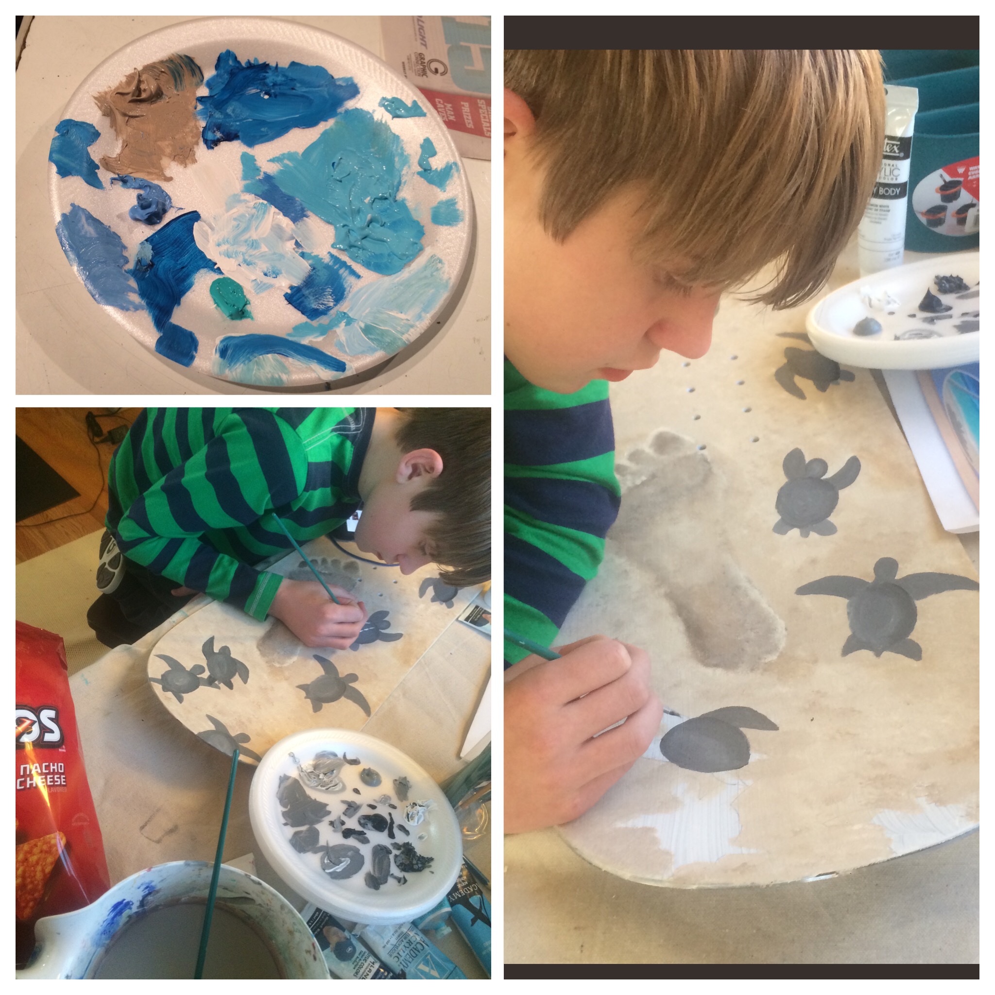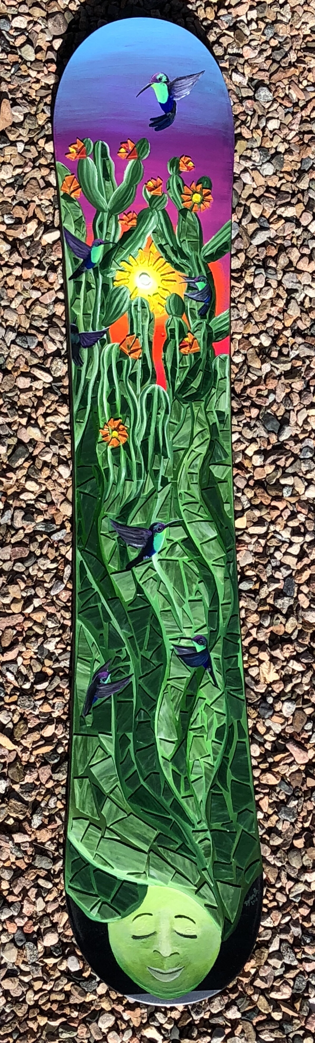 This year Dylan decided to use glass to enhance his painting of Mother Nature and his favorite wood nymph hummingbirds.