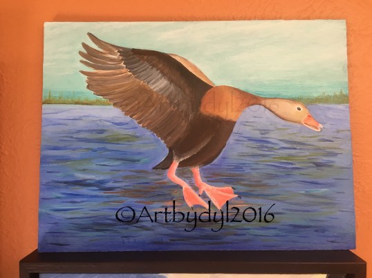 This acrylic painting of a Ruddy Duck is going to be submitted for the Junior Federal Duck Stamp competition. Dylan really enjoyed learning about the duck and its habitat. His conservation message, “Preserving the beauty of waterfowl and their habitat is a reflection of humanity’s soul.”