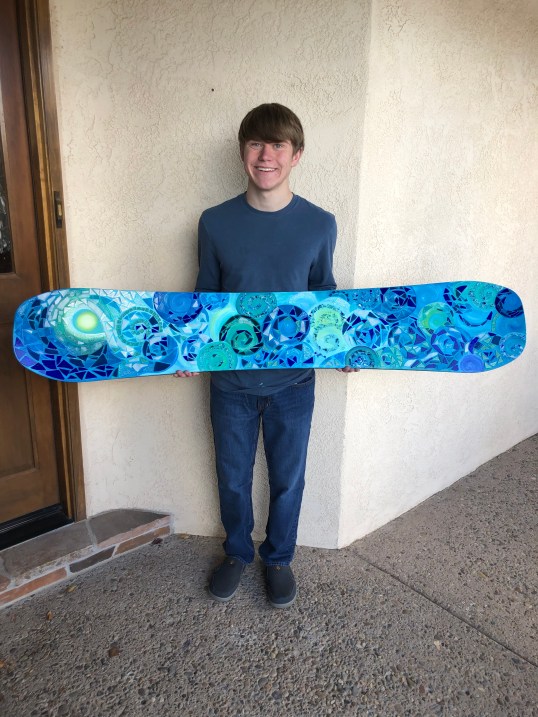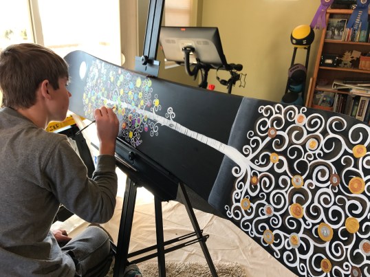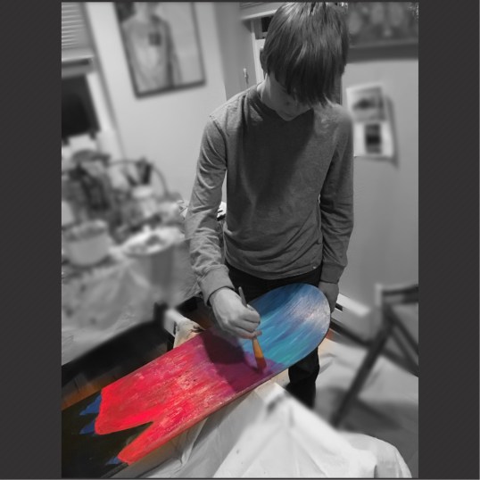 Almost done with this years Paint for Peaks snowboard submission. For three years Dylan has been honored to participate in this event and know that his art is doing some good things in this world.