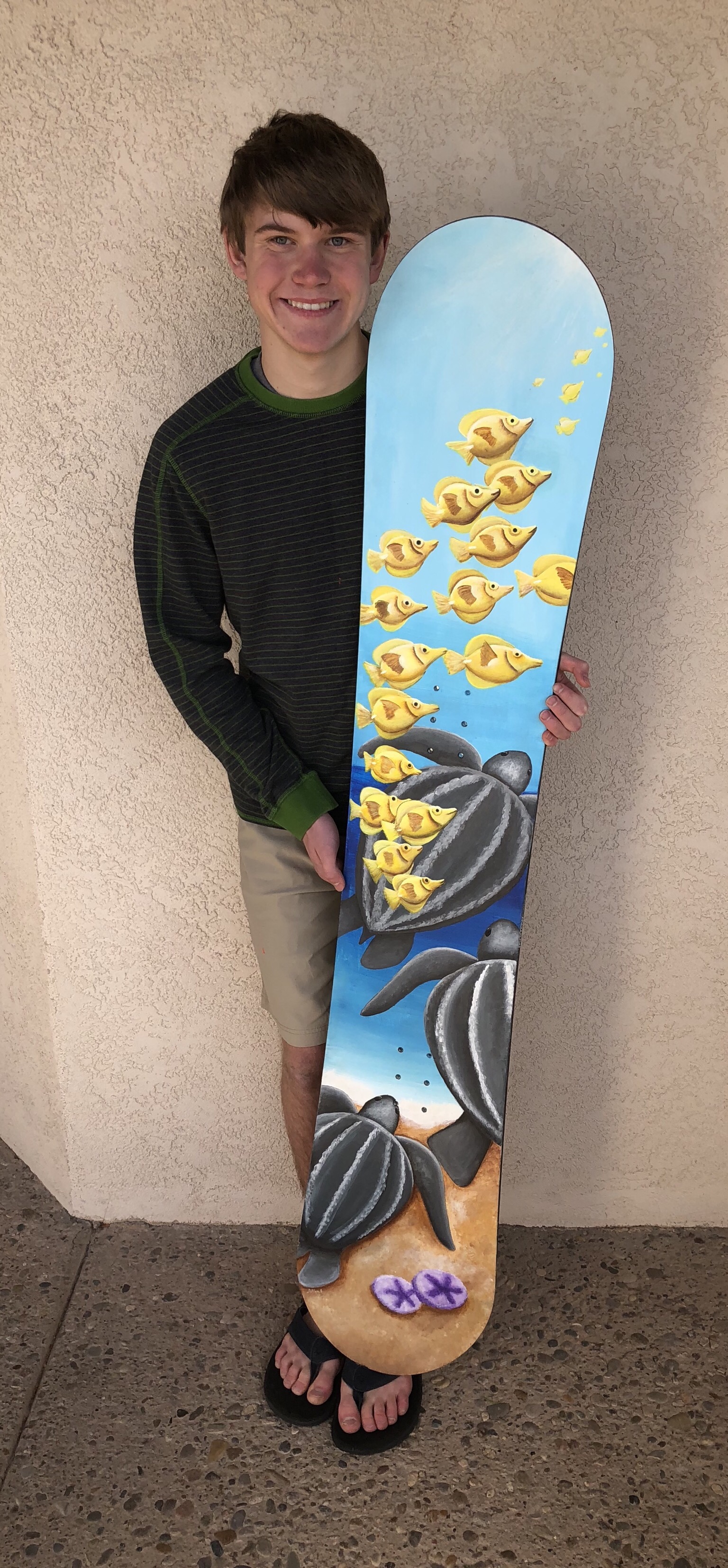 Dyl painted this loggerhead turtle in hopes that he would be part of the Tour de Turtles T-shirt art contest. Well, he made it to the finals! If you love his turtle, like he loves turtles and the ocean, please follow the link and click LIKE.